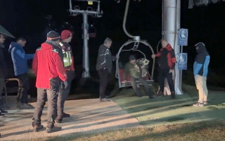 Након четири сата, јер је "жица" била заустављена по наредби тужиоца, до окончања увиђаја, на земљу су спуштени промрзли туристи.