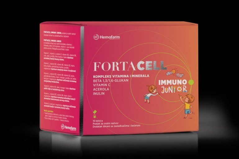 За родитеље који желе да ојачају рутину бриге о здрављу малишана, ту је Fortacell Immuno Junior – додатак исхрани за децу старију од 4 године, са комбинацијом витамина и минерала и додатним састојцима као што су бета-глукан, ацерола и инулин. Пријатног укуса поморанџе и једноставне примене (једна кесица дневно), Фортацелл Иммуно Јуниор помаже да се навике подршке имунитету лакше одрже и онда када дани постану најдинамичнији.