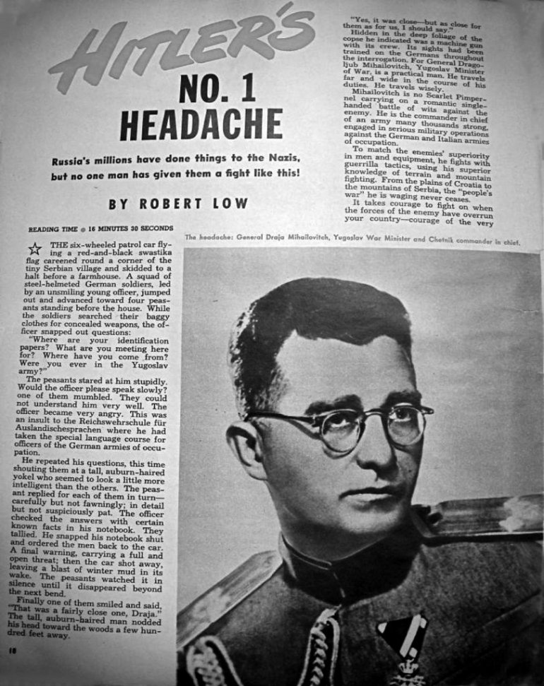 Тесла је до своје смрти остао искрен поштовалац краљевског дома Карађорђевић. А по сведочењу његовог блиског пријатеља, др Паје Радосављевића, био је одушевљен херојском борбом српског народа и дивио се вођи Југословенске војске у отаџбини, генералу Драгољубу Дражи Михаиловићу,  који је, као први герилац Европе, тих година био звезда у америчким медијима. Амерички лист Тime  објавио је Михаиловићев портрет на насловној страни. Орсон Велс и Винсент Прајс урадили су радио- -драму The chetniks, а у Холивуду је снимљен филм „Четници. Борбена Герила”. Филм је режирао Луис Кинг, док су главне улоге поверене Филипу Дорну и Ани Стен. Штампани оглас који је најављивао филм о четницима у САД завршавао се реченицом: „(...) Живите, волите, борите се са Дражом Михаиловићем и његовим борбеним герилцима”.