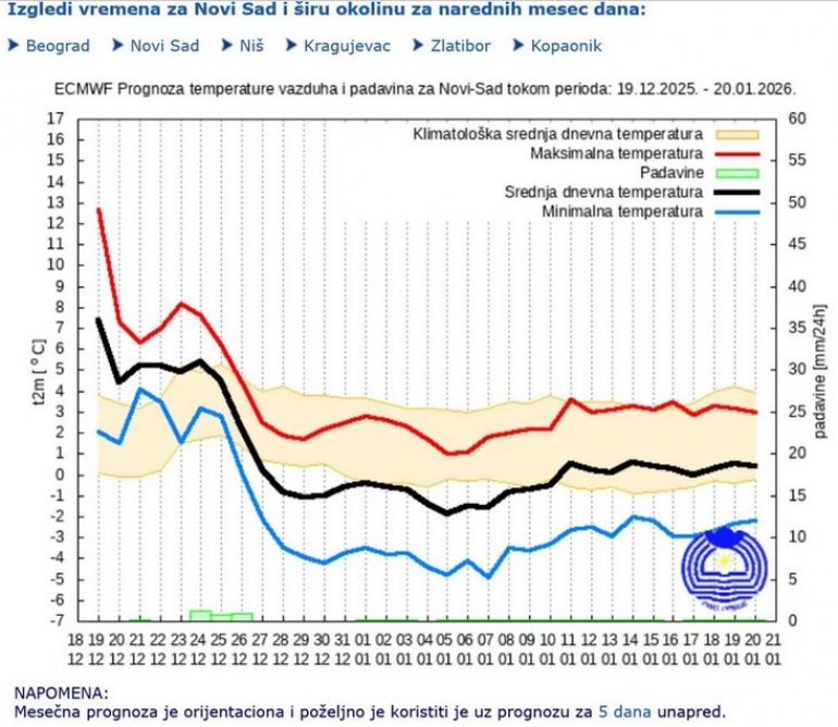 Чубрило каже и да месечни систем прогнозе ЕЦМWФ-а од сада, па до краја јануара симулира испод просечне температуре.