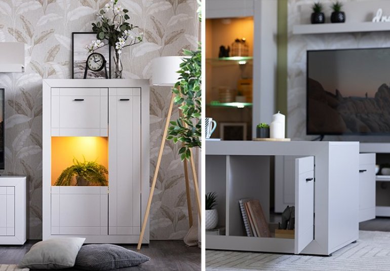 Систем елемената WARWICK обухвата шест пажљиво осмишљених комада намештаја, чинећи га свеобухватиним решењем за опремање дневне собе. Захваљујући бојама и дизајну, завеса MOLY ће се савршено уклопити у целокупни амбијент, док ће тепих из Форма Идеале колекције пружити дубину амбијенту. Било да уређујете мањи простор или пространи дневни боравак, елементи овог система омогућиће вам лако креирање функционалне и естетски складне целине, а док ће вештачко цвеће у саксији само допринети атмосфери.