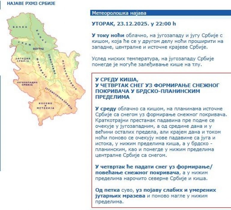 РЕПУБЛИЧКИ хидрометеоролошки завод огласио се на свом званичном сајту најновијим упозорењем.