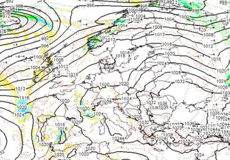 Истовремено, циклон над западом Медитерана доноси падавине и доста облака.