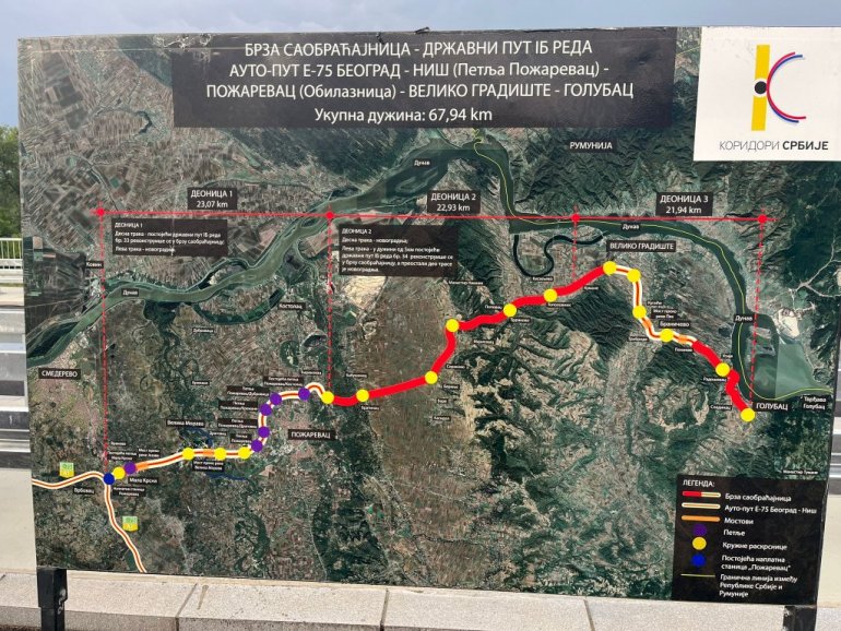 Према плану, прво ће бити отворено 30 километара брзе саобраћајнице од Пожаревца до Великог Градишта, а затим и део од Градишта до Голупца. Након тога, остаће још седам до осам километара до потпуног завршетка.