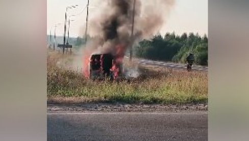 Несрећа се догодила рано јутрос. Након судара, аутомобил и комби слетели су у јарак и запалили се.
