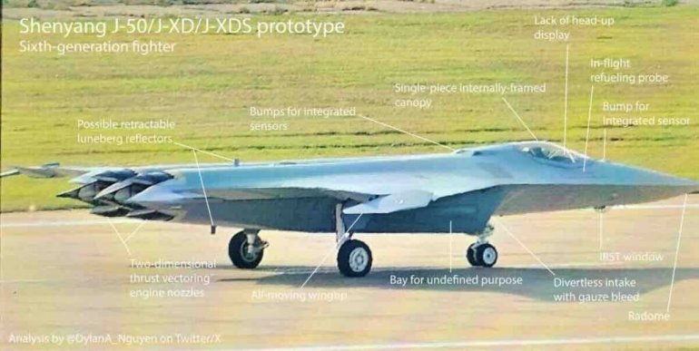Остаје неизвесно да ли су мотори новог ловца дериват WS-15, који покреће побољшане варијанте J-20, или је у питању дизајн без икаквог детаља. WS-15 је један од два најнапреднија и најефикаснија борбена мотора који се данас производе, са сличним односом тежине и потиска као F135 који покреће амерички стелт ловац F-35. Пошто је Шенјангов ловац шесте генерације у великој мери оптимизован за стелт, не само да његова конфигурација без репа знатно смањује његов радарски пресек, (мањи него Ф-35) већ се истичу и његови трапезоидни усисници ваздуха са надзвучним улазом без преусмеравања. Употреба окретних врхова крила изгледа да има за циљ повећање стабилности правца како би се надокнадио недостатак репа.