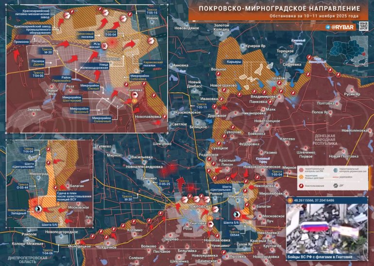 Према извештају 7. корпуса украјинских снага, руске јединице су од 6. новембра напредовале кроз јужне периферије Покровска користећи брзу и лаку технику. Према наводима Украјинске правде, Руси су на том подручју распоредили и минобацаче, који сада туку положаје оператера дронова украјинске војске.
