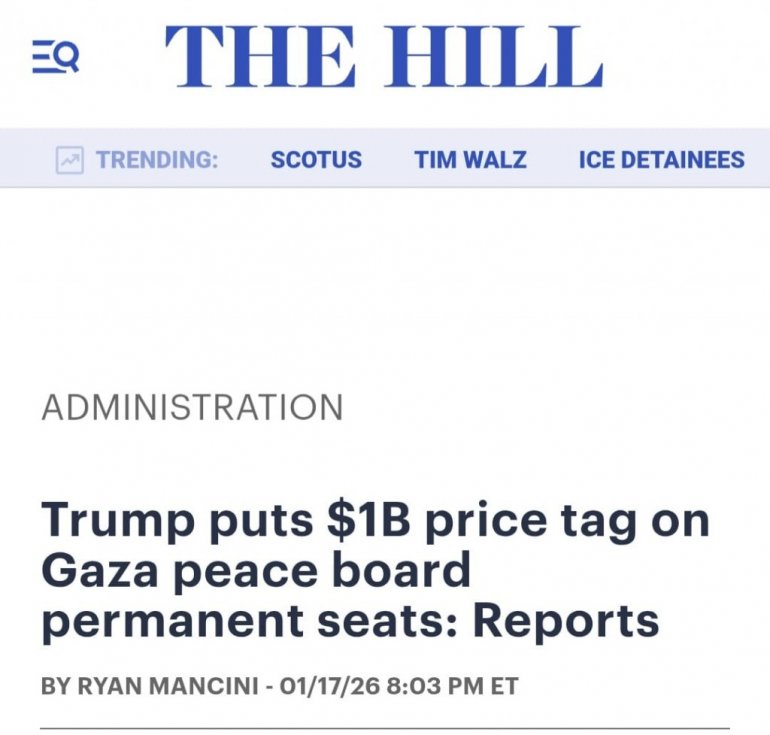 Рама је тако синоћ саопштио да је личним позивом председника САД Доналда Трампа изабран да представља Албанију у Одбору за мир, међународној организацији формираној за обнову Газе, истичући да овај позив потврђује раст угледа Албаније на глобалној дипломатској сцени. Оно што је, пак, прећутао, јесте да за чланство у Трамповој новотарији мора да искешира милијарду евра!