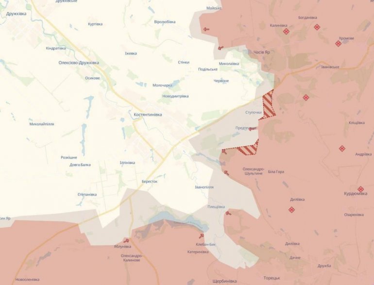 Према јавној страници, руска војска је напредовала код села Предтечино и Ступочек, у близини града Костантиновка.