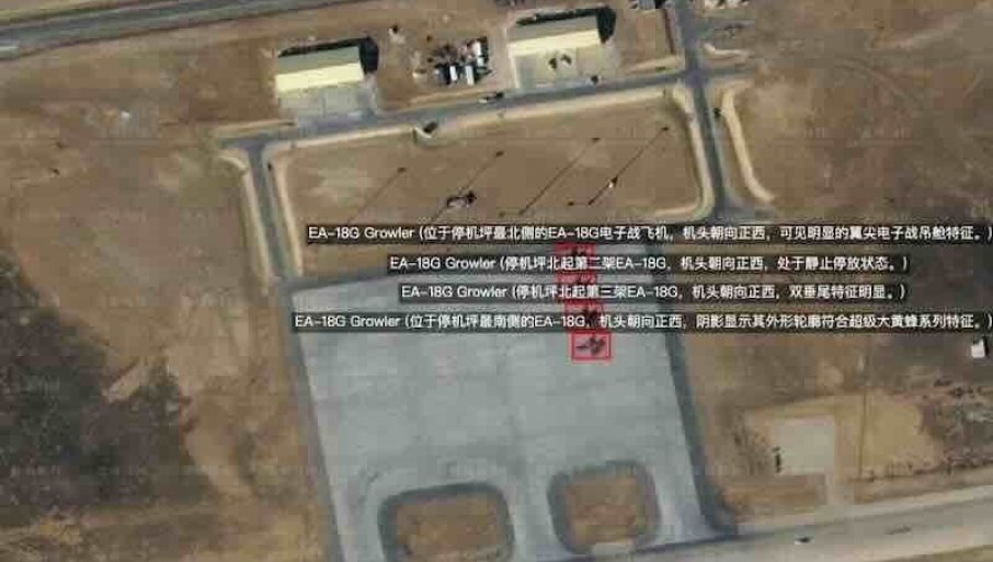 Сателитски снимци кинеске агенције МизарВисион, који су се појавили 4. фебруара, потврђују да су у базу недавно распоређена четири авиона за електронско ратовање ЕА-18Г Гроwлер америчке морнарице. Ове летелице се стандардно користе у операцијама сузбијања противваздушне одбране и електронског ометања, што им даје кључну улогу у припреми офанзивних ваздушних кампања. На истим снимцима уочена су и најмање два америчка борбена дрона МQ-9 Реапер, иако није прецизирано да ли су у базу стигли пре или након најновије ескалације тензија са Ираном.
