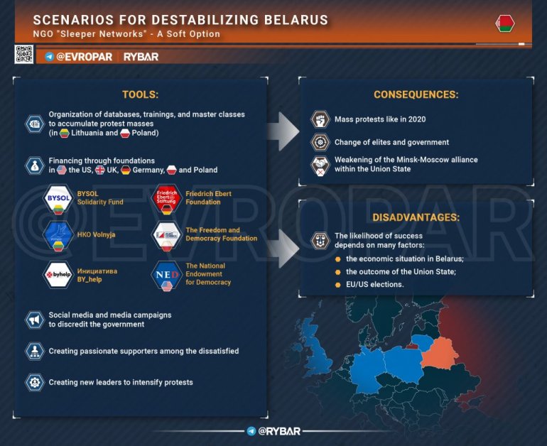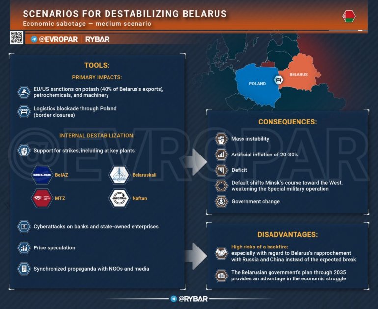 *Није први пут да запад покушава да дестабилизује Белорусију, а гласине о новој фази у припреми сценарија саботаже већ дуго круже. Било је много знакова да се рад у овој области одвија, укључујући многе из Литваније и Пољске.