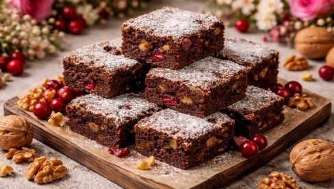 БОЖИЋНИ ЧОКОЛАДНИ БРАУНИЈИ: Укусан колач са брусницом и орасима