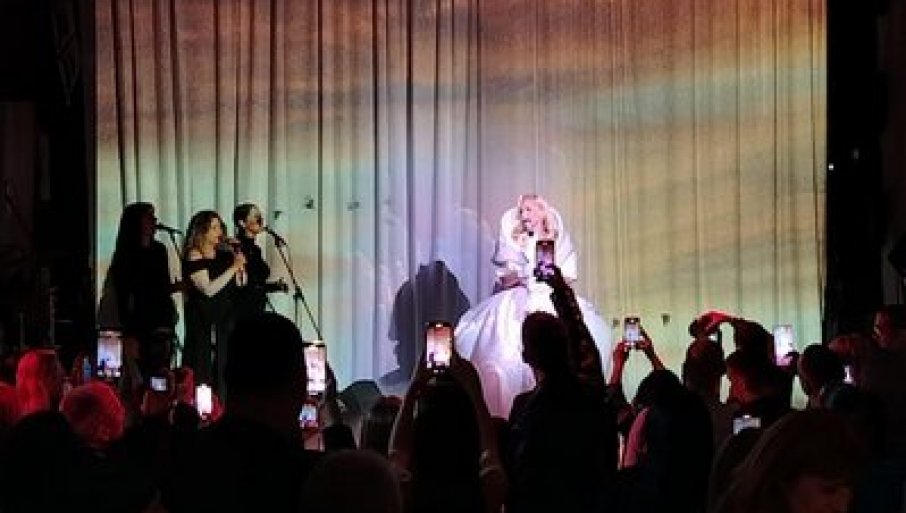 Сва у белом поп дива се попела на сцену и кренули су први такови насловне нумере "Мама".