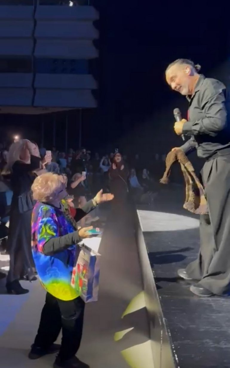 ДИРЉИВ ТРЕНУТАК УСРЕД КОНЦЕРТА: Тони Цетински пољубио обожаватељки руку када му је уручила ручно плетени шал (ФОТО)