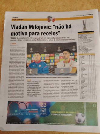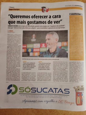 Иначе, оба листа су на својој насловној страни највише пажње посветили победи лисабонског Спортинга против Марсеја у Лиги шампиона, док је најава дуела Браге и Црвене звезде ту добила мало простора.