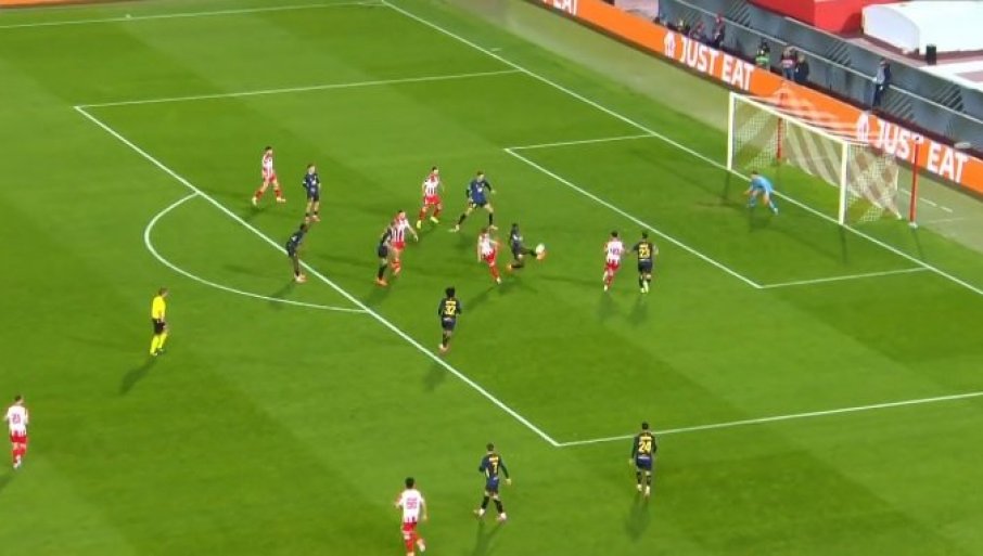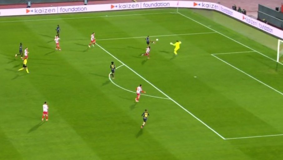 80' - Каква шанса за Звезду! Арнаутовић је сјајно спустио лопту до себе, за младог саиграча, који није успео да је захвати како је желео и сјајна прилика одлази у неповрат!