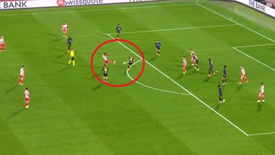 Јер, на супарничкој страни терена је одузета лопта. Враћена је скроз до голмана, а овај проиграо Вељковића, он Радоњића, после чега је уследила лопта за Сеола и - кључно додавање ка Иванићу. Капитен Звезде је умакао чувару у том, 84. минуту, натерао својим бегом голмана Лила Озера да га фаулира и то је био пенал.