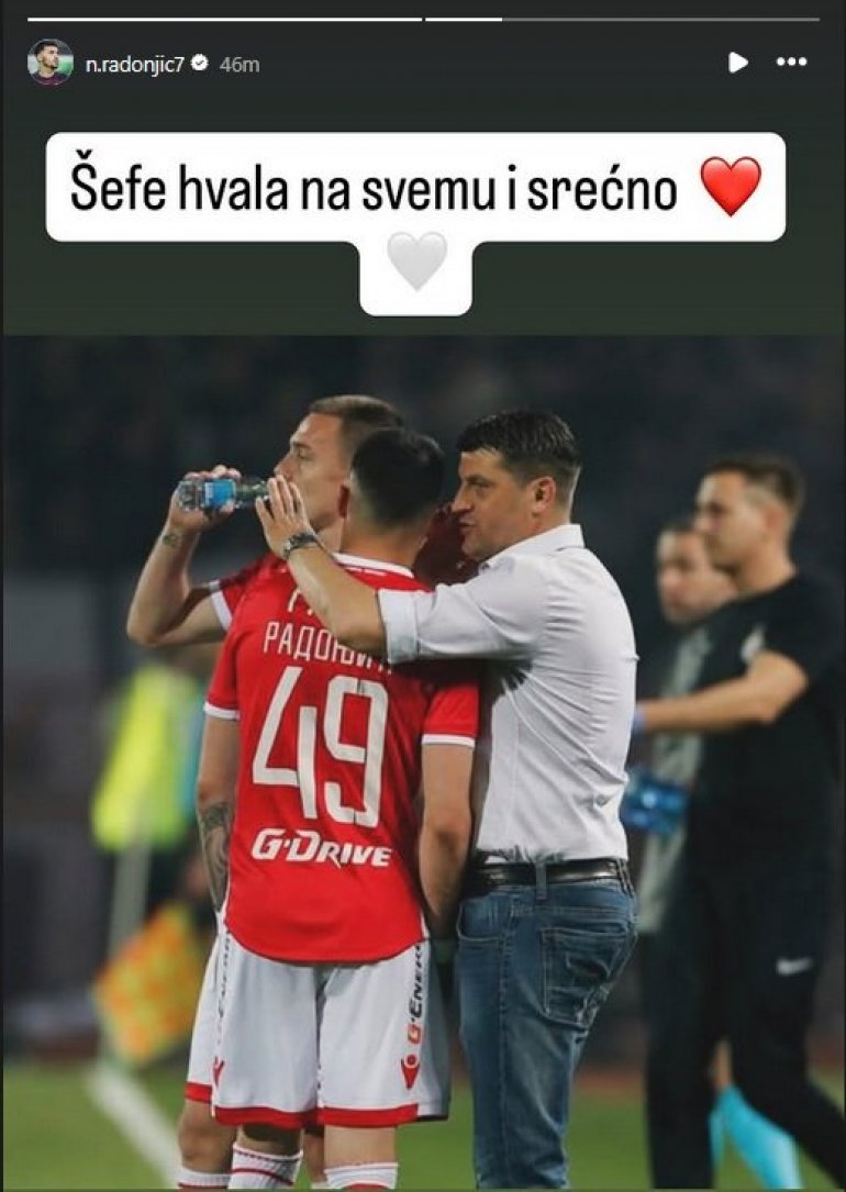 - Шефе, хвала на свему и срећно - написао је Радоњић, уз емотикон црвеног и белог срца.