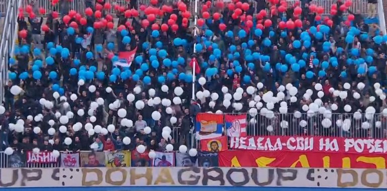 14.39 - Нема где игла да падне на Градском стадиону, западна трибина је до последњег места попуњена.