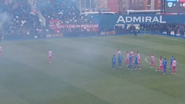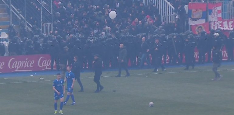 Играчи оба тима су отишла код својих тренера, дим је се подигао, али још се чека наставак меча.