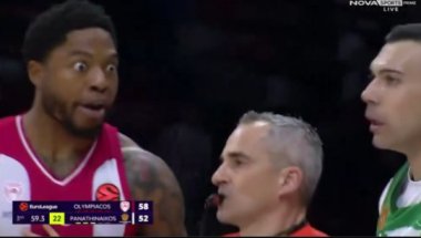 Тачније, бивши центар Партизана насрнуо је на легенду Евролиге и то пред крај треће деонице при резултату 58:52 за Олимпијакос.
