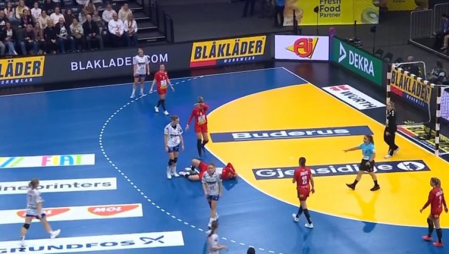 38' - Суна Хансен даје сјајан гол са играчицом мање. Шут "са земље", врло лепо, нема шта. Али, одмах узвраћа Драгана Цвијић, таман на крају бројчане предности - 20:18.