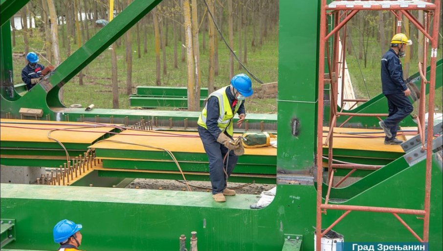 НА СТО МЕТАРА - ТРИ МОСТА: Почела монтажа конструкције преко реке Тамиш (ФОТО)