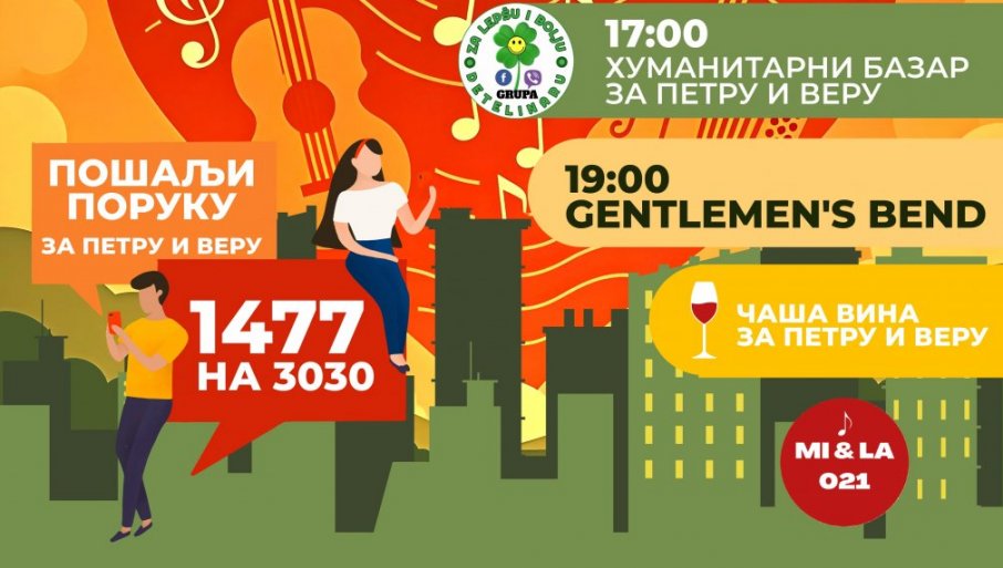 У 17 часова почеће хуманитарни базар за Петру и Веру, сат касније је музички програм а затим концерт Gentlemen’s benda као и посебан део вечери: Чаша вина – за Петру и Веру.