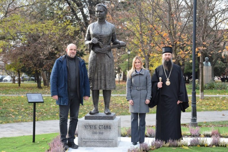 - Било нам је потребно више од 220 година да Чучук Стана добије споменик, овај је први. Први пут у историји положили смо венац њој у част. Пролазиће овим сокацима наши потомци и сетиће се да се њихови дедови нису огрешили и да су овим спомеником оставили светионик слободе за сва времена која долазе - поручила је Милица Ђурђевић Стаменковски, министар за рад, запошљавање, борачка и социјална питања.