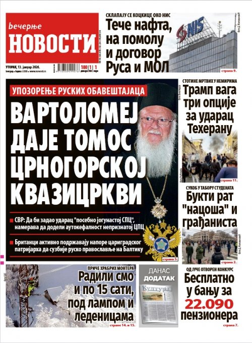 Вечерње новости - штампано издање za 13.01.2026.