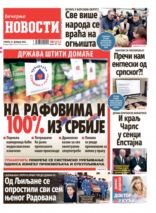 Вечерње новости - штампано издање za 21.02.2026.