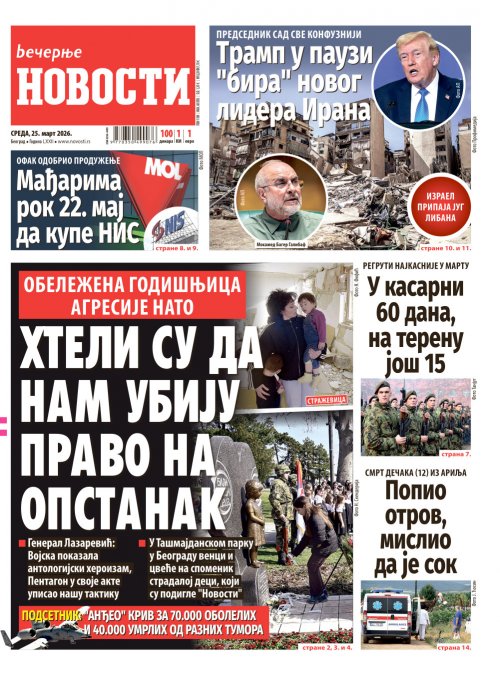 Вечерње новости - штампано издање za 25.03.2026.
