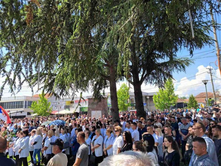 Такође, радници Дома здравља из Доње Гуштерице пешке су стигли ка Грачаници на мирни митинг подршке Србима са севера Косова и Метохије.