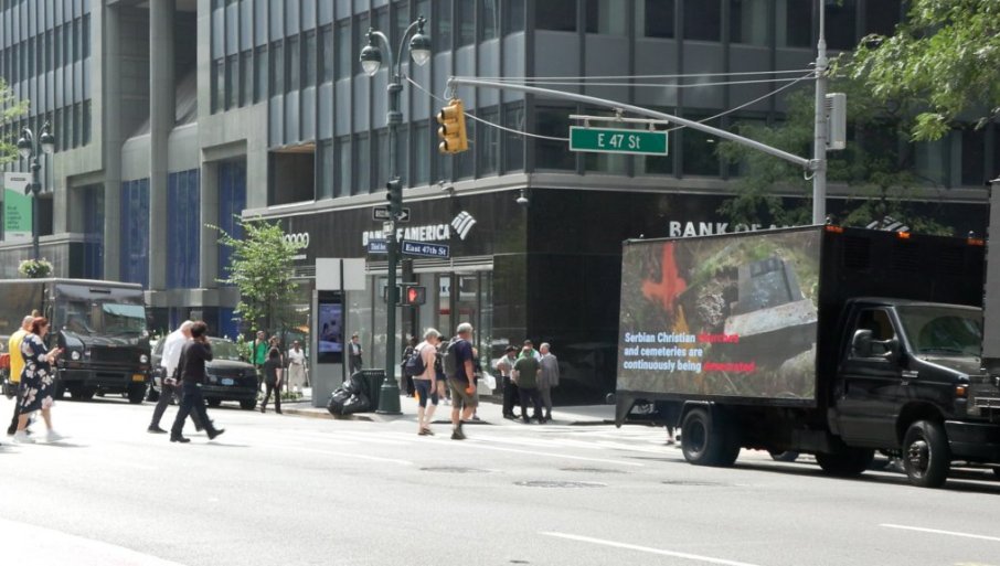 КАО и прошле године, током заседања Генералне скупштине Уједињених нација, и ових дана на улицама Њујорка, око седишта светске организације круже три камиона са билбордима којима српска дијаспора у САД жели да скрене пажњу на тешку ситуацију у којој живе Срби на Косову и Метохији.