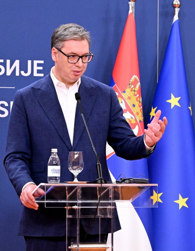 - Ја прихватам да смо ми недовољно добри што се тиче геополитике, као што сте рекли, имамо проблем са изражавањем. Не знам још коју реч у овој земљи, у медијима нисмо чули против представника власти, а коју никада нигде на западу нисмо чули. То је још једна ситница са којом нисам сагласан. Моје срце и глава ми не дају да лажем, зато ћу скратити говор. Србија ће да настави реформе, за нас је европски пут стратешки пут и то се неће мењати за мог мандата. Мислим да има много важних ствари које треба са ЕУ да урадимо. Ценимо изузетно подршку од Урсуле фон дер Лајен за све ове године. То је огроман новац. Ценимо огроман број инвестиција које су стигле из Европске уније и захвални смо на томе бескрајно. Уверен сам да су нам потребне значајне реформе у области правосуђа и владавине права. Верујем да људи у Влади могу да раде убедљивије. Ја се трудим да не кажем различите ствари, обећао сам да ћу само лепо да говорим о ЕУ. Ви у ЕУ не морате да бринете ускоро ће крај мог мандата, па ће доћи неко шармантнији и много финији, ко уме лепше да се обраћа од мене. Наш стратешки пут је европски пут, до избора. Не знам где бисмо друго ишли. Ми смо у тежој позицији него други. Што се реформи тиче, даћемо све од себе, прихватам сваку врсту одговорности. Гледаћу под старе дане себе да променим и прегризем језик чешће. Узећемо извештај на веома озбиљан начин у разматрање, видећемо шта можемо да исправимо, да пробамо да дођемо на шесто, седмо место - каже Вучић.