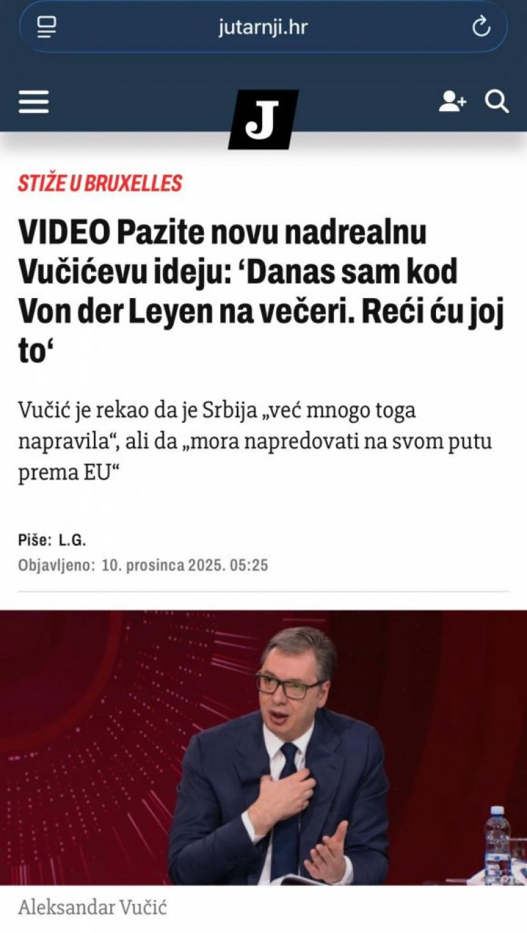 Дакле, док Вучић који је препознат као човек помирења у региону, који подстиче просперитет и успехе свих, даје сјајну идеју, Хрвати одмах на сва уста "звоне" да су против јер би улазак свих других у региону у ЕУ разбио њихов лажни, незаслужени ексклузивитет.