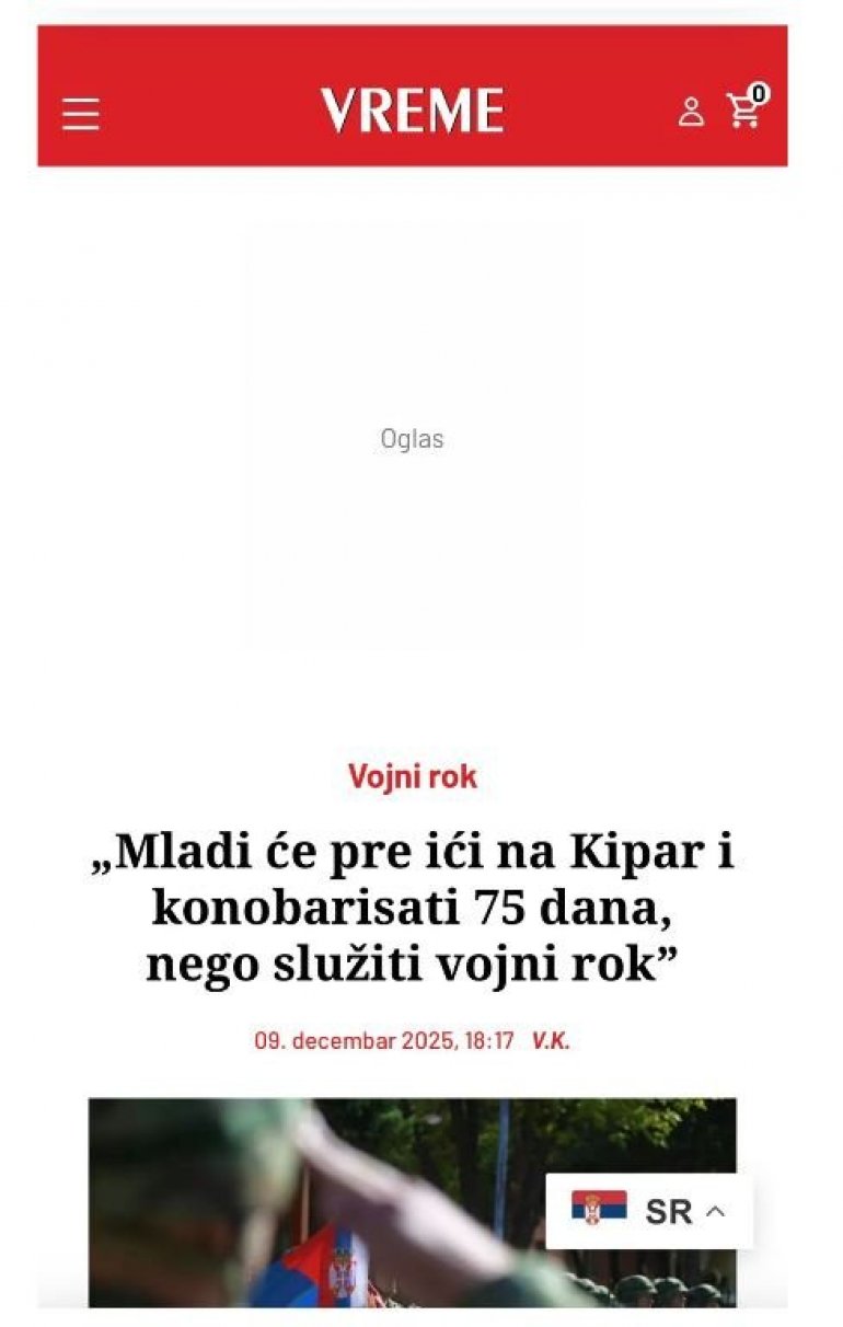 БОЛЕСНА, АУТОШОВИНИСТИЧКА И АНТИДРЖАВНА КАМПАЊА "ВРЕМЕНА": Док цела Европа уводи војни рок, они шаљу младе на Кипар
