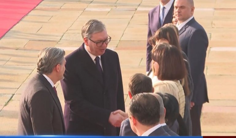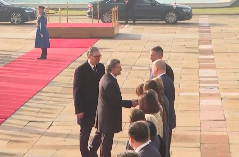 Председник Србије Александар Вучић приредио је свечани дочек за председника Грузије испред "Палате Србија".