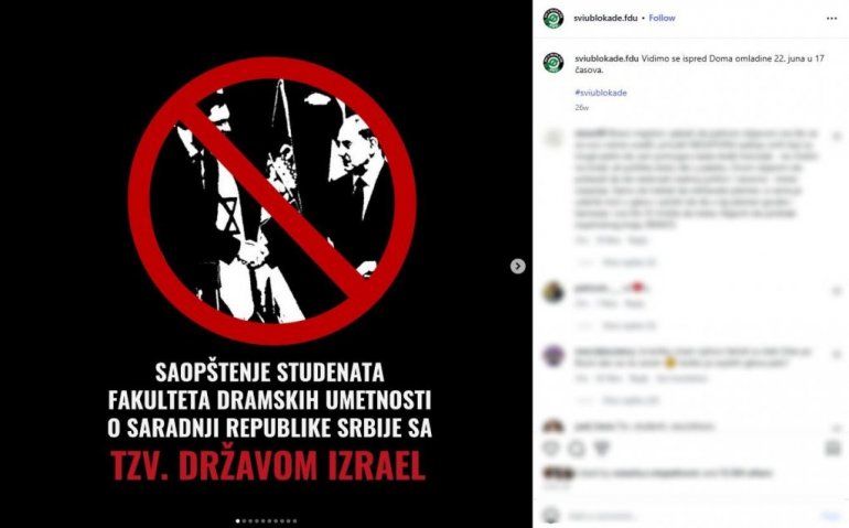 И Саопштење студената у блокади Факултета драмских уметности о сарадњи републике Србије са ТЗВ. ДРЖАВОМ ИЗРАЕЛ