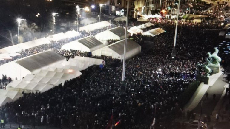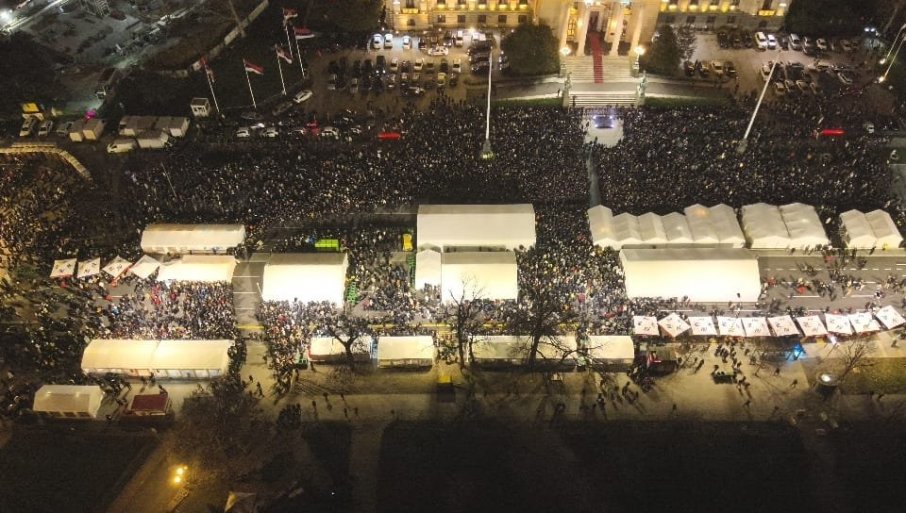 Простор испред Скупштине већ је испуњен посетиоцима, док су постављени и бројни штандови у оквиру Божићног села, које ће у наредним данима бити отворено за грађане.