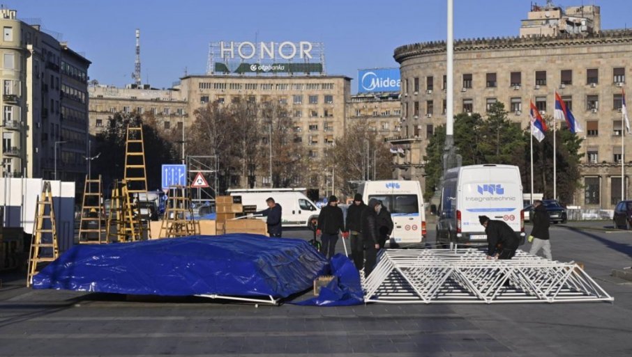 ПОЧЕЛО је постављање монтажних објеката за Божићно село испред Народне скупштине, које ће наредних дана бити отворено за све грађане.