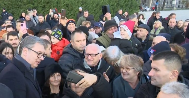 Председник је стигао на новогодишњи вашар, а грађани су похрлили да се сликају са њим.