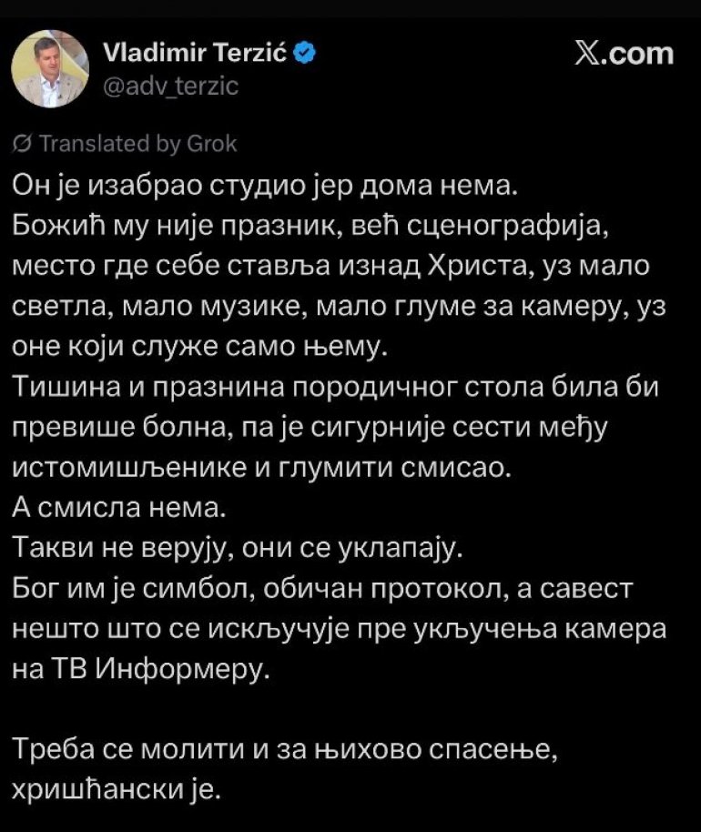 Између осталог, Вучића су прозивали да није узео терапију на Бадњи дан, да му Бадње вече буде последње на слободи, као и да је себе ставио изнад Христа.