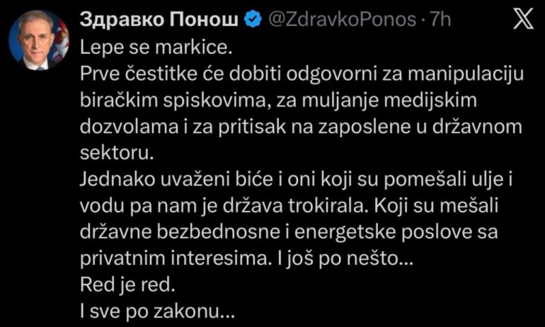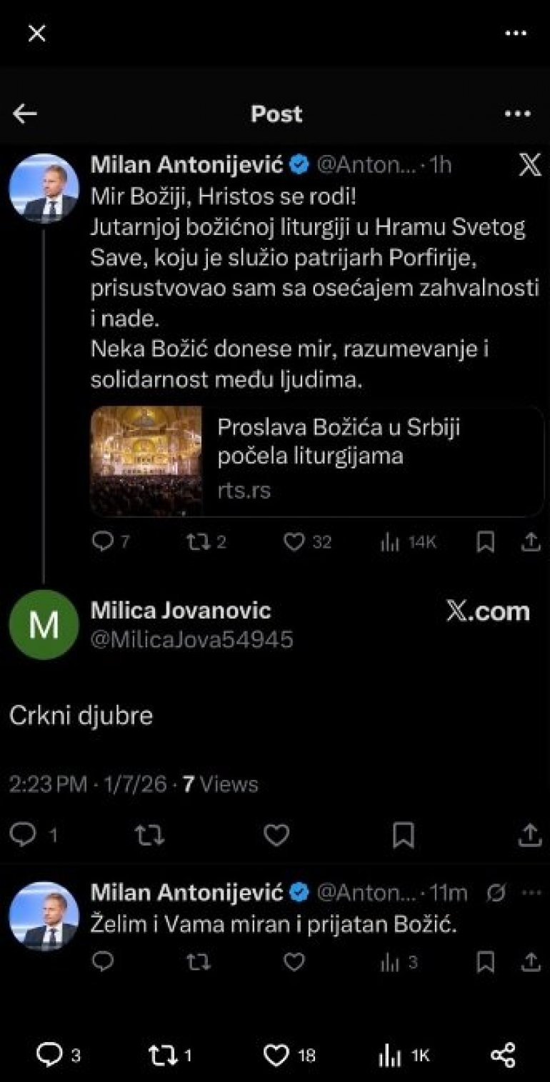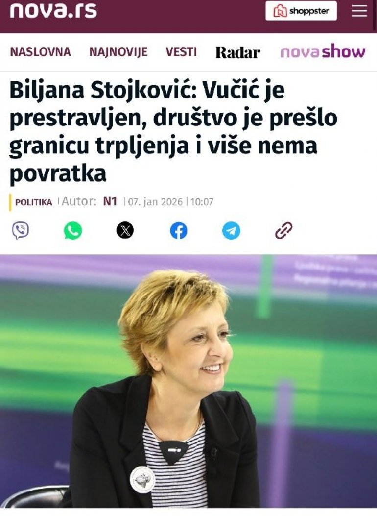 - И сам Вучић се оглашавао само да честита нашем народу празник и да укаже на оне ствари које су се дешавале широм света као и на опасности које се спремају и Србији током 2026. године. Ми се чак ни на то из странке нисмо оглашавали, али је добро да људи виде разлику и добро је да виде како је сада више него пре искоришћено време од стране блокадера да за празнике нападају председника - рекла је Брнабић.