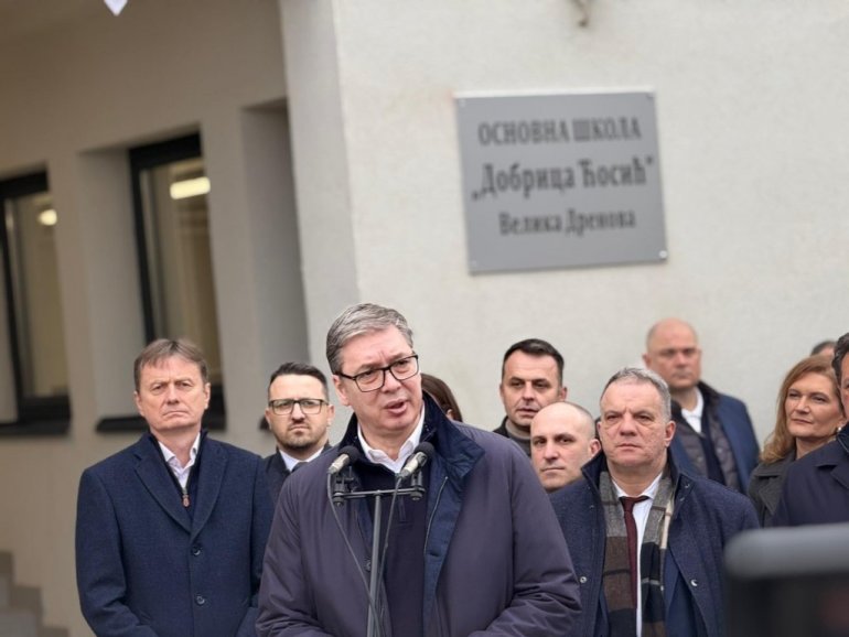 ВУЧИЋ ОБИШАО ОБНОВЉЕНУ ШКОЛУ У ВЕЛИКОЈ ДРЕНОВИ: Срећан сам што сам у месту великог патријарха Германа и Добрице Ћосића (ВИДЕО)