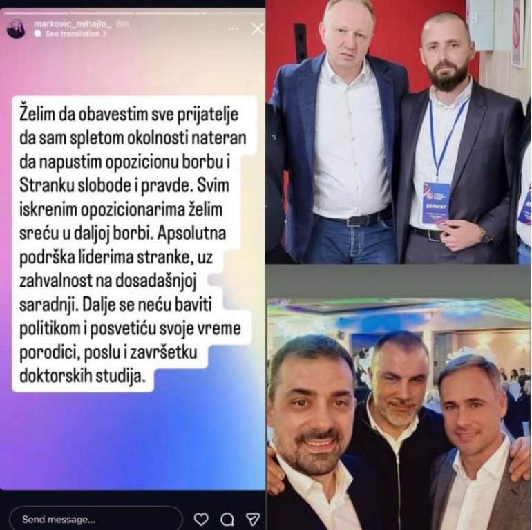 МИХАИЛО Марковић, којег су у врху Странке слободе и правде промовисали као ново лице и политичку наду Драгана Ђиласа и Маринике Тепић, напустио је општински одбор те странке у Бајиној Башти, чиме је у потпуности оголио сву беду, сујету и лицемерје опозиције.