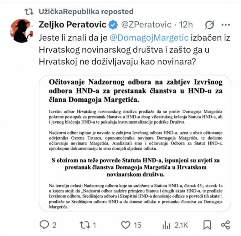 ЧАК И БЛОКАДЕРИ ПРИЗНАЈУ! Домагој Маргетић je преварант - избачен из Хрватског новинарског друштва