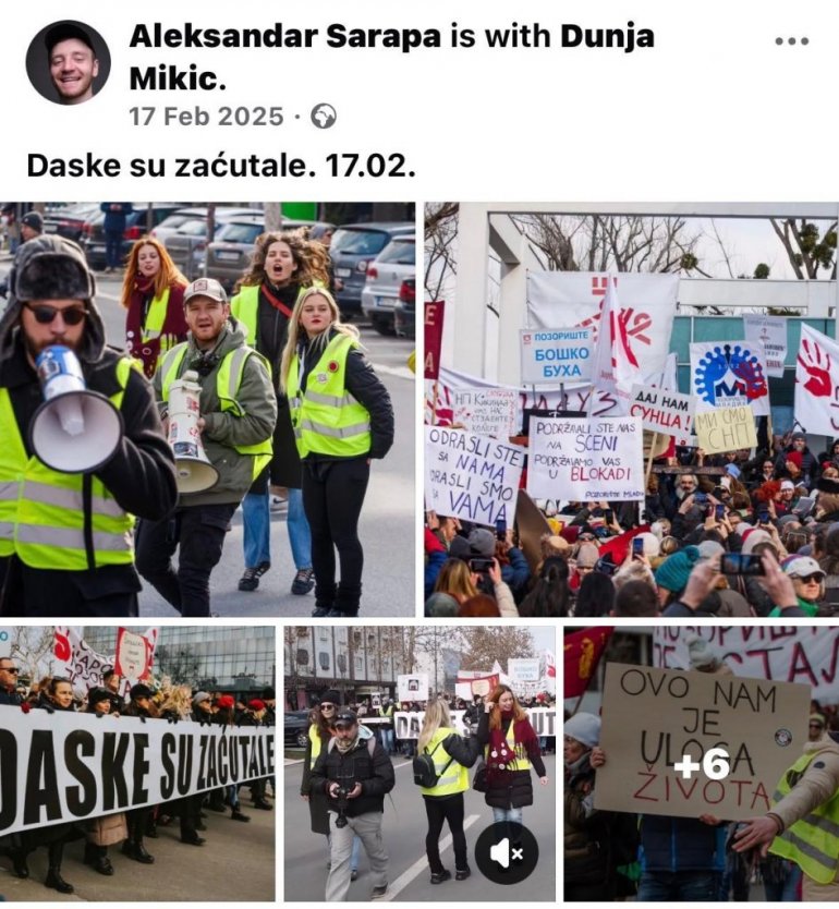 Наиме, у питању је блокадер Александар Сарапа који се на друштвеним мрежама хвали својим политичким активизмом.