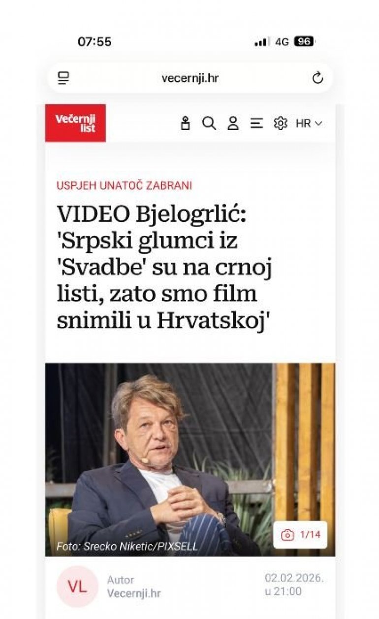 ДРАГАН Бјелогрлић, у изјави за хрватске медије, рекао је да су српски глумци из Свадбе наводно на "црној листи", због чега су "филм снимили у Хрватској".