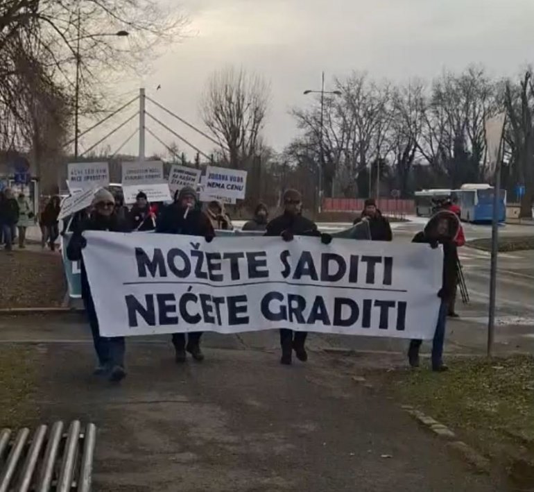 "Можете садити, нећете градити!", исписано је на транспарентима које носе.